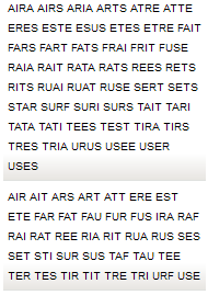 Trouve le plus de mots de trois lettres et plus en 5 minutes.